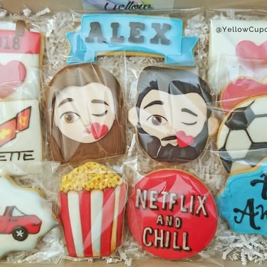 Our handcrafted butter cookies are the perfect surprise! This special package includes 12+ custom-shaped cookies inspired by the recipient’s favorite hobbies, sports, or interests. Just share your ideas, and we’ll turn them into delicious, beautifully decorated treats!