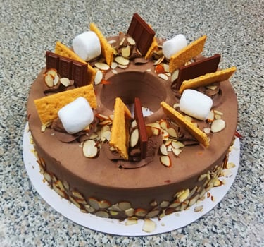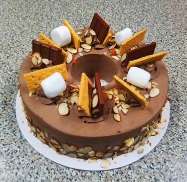 This is our delicious butter cake covered with chocolate buttercream to achieve a smooth balance of taste! Decorated with a variety of toppings such as almonds, chocolate chips, chopped pecans, dulce de leche, etc.